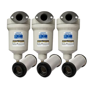 Bộ lọc tách nước DSF (Drain Super Filter), là bộ lọc có hiệu suất cao trong hệ thống xử lý khí nén Orion. Với vỏ ngoài làm từ nhôm (kí hiệu là AL) hoặc loại vỏ bằng Inox 304 (ký hiệu là SUS), DSF là cấp lọc đầu tiên được tích hợp trước máy sấy.